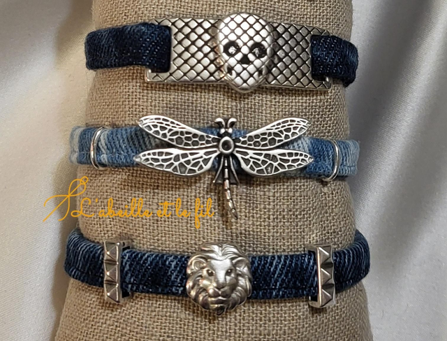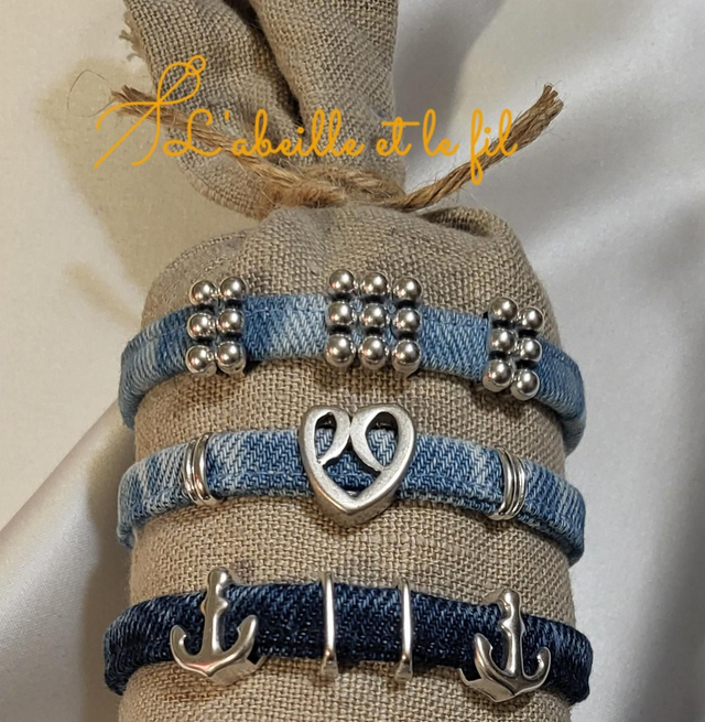 Bracelets pour homme ou femme d'une longueur de 20 cm. Lanière réalisée en denim upcyclé, fermoir aimanté très pratique et résistant.