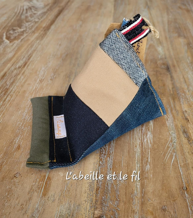 Support de téléphone original et nomade, il est crée avec du jean 100 % recyclé.
